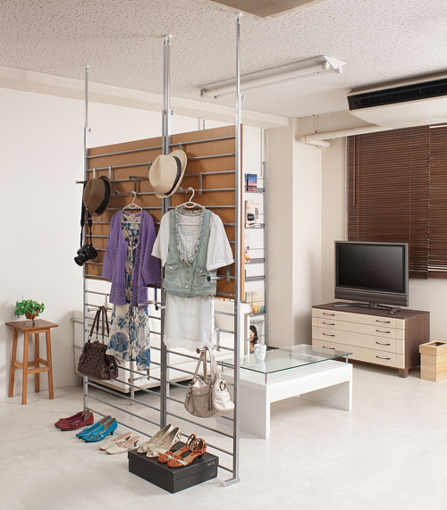 もちろん上下ともに外して、両側に洋服や鞄を掛けておくことも可能です。 |