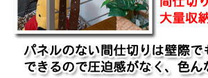 | つなぎの前後を逆にしてそれぞれのスペースの収納&間仕切りに。 |