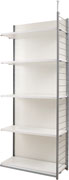 | 棚板は、8cm間隔、25段階で高さ調整が可能です。また、棚板は、両サイドのバーに引っ掛けるだけですので、簡単に設置が可能です。 |